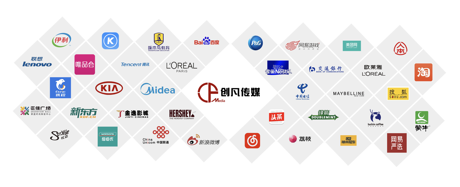 公司以“做品牌年輕化的好幫手”為使命,憑借敏銳的創意洞察、卓越的營銷策劃能力、豐富的活動經驗和全方位的媒體資源,為企業提供高效、精準的一站式營銷推廣服務。已成為寶潔、騰訊、京東、中國聯通、字節跳動等世界500強品牌庫內供應商。